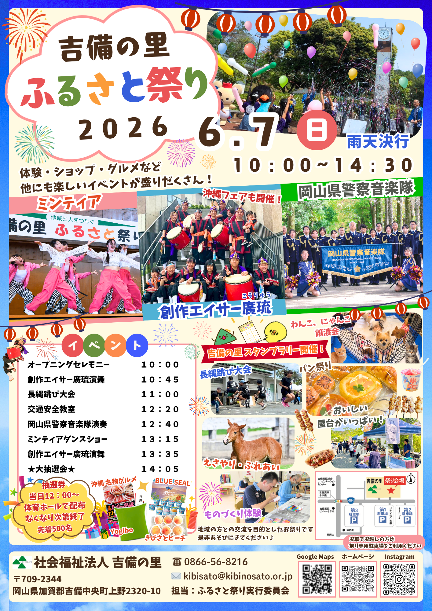 お知らせ TOP お知らせ 令和8年度 ふるさと祭り開催‼ 令和8年度 ふるさと祭り開催‼ 2026.04.20 お知らせ 令和8年度 ふるさと祭りを開催します!今年度もパン屋さんの出店や餅つき大会、長縄跳び大会、ステージパフォーマンス、抽選会などイベント盛沢山!皆様のご来場をお待ちしております♪詳細はコチラ! 一覧に戻る